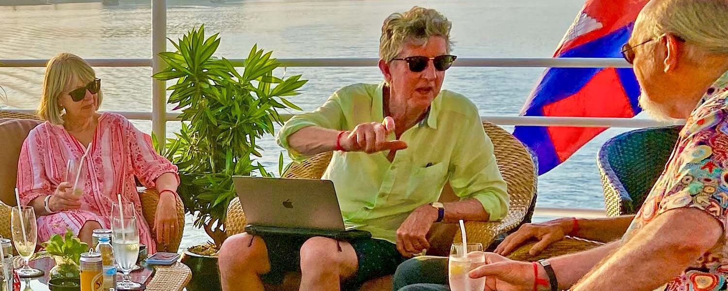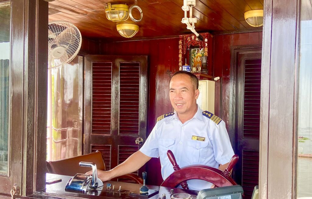 I’m aboard the boutique teak and steel-hulled RV Toum Tiou II (TT2), partaking in their nine-day New Discovery Cruise. Introduced in October 2023, it sails from Siem Reap in Cambodia to Saigon/Ho Chi Minh City (HCMC) in Vietnam, or the reverse. All restaurant meals aboard, most on-land tours, English-speaking guides and Wi-Fi are included. Alcohol is not included. However, they have a good variety that is reasonably priced, or you can take your own aboard, and they will happily refrigerate it if required.