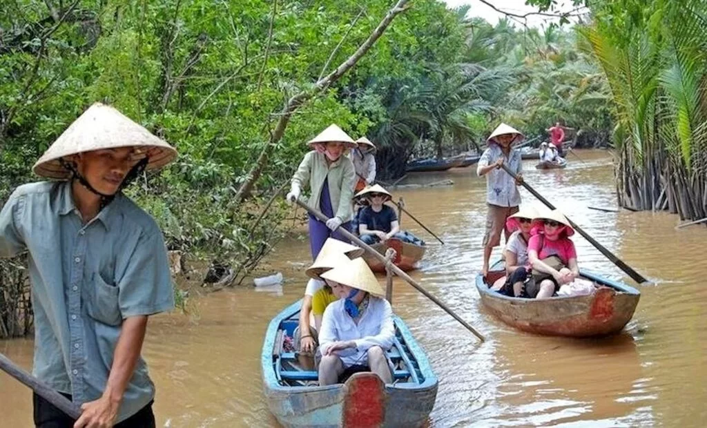 Our afternoon tour is to Tra Su Cajuput Forest. It is an 850-hectare lush haven, not just for locals and visitors but for a diverse array of birds and animals. It’s a natural wonder created by towering Cajuput (Melaleuca) trees, both Australian paperbarks and Asian whitewood trees that flourish in the permanently flooded wetlands.