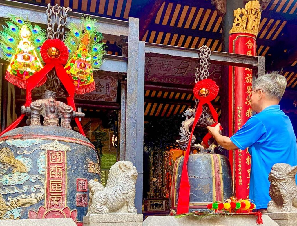 Back at ground level, the unmistakable aroma of the bun ca that Chai Doc is known for assaults my nostrils as we dash up the street to the ancient Mieu Ba Chua Xu pagoda. A turmeric-based noodle soup, bun ca is made with river fish, fresh rice noodles, fermented fish paste, garlic, bean sprouts, banana blossoms and slightly bitter điên điển flowers. It’s a delicacy around the Mekong Delta and is renowned in Chau Doc. My mouth waters at the thought, but there’s no time to investigate; I’ve already lost sight of our guide and the rest of the group.