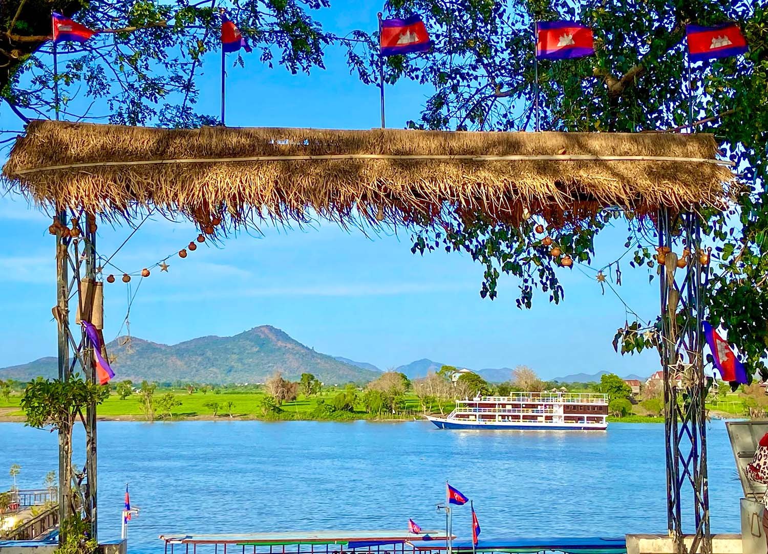 January is well into the dry season, and Southeast Asia’s largest freshwater lake and part of the vast Mekong River system, the Tonlé Sap Lake, is lower. So, a bus meets the ship further downriver. For us, this was at Koh Chen, where the river level allows for easy dockside embarkation for the start of our cruise.