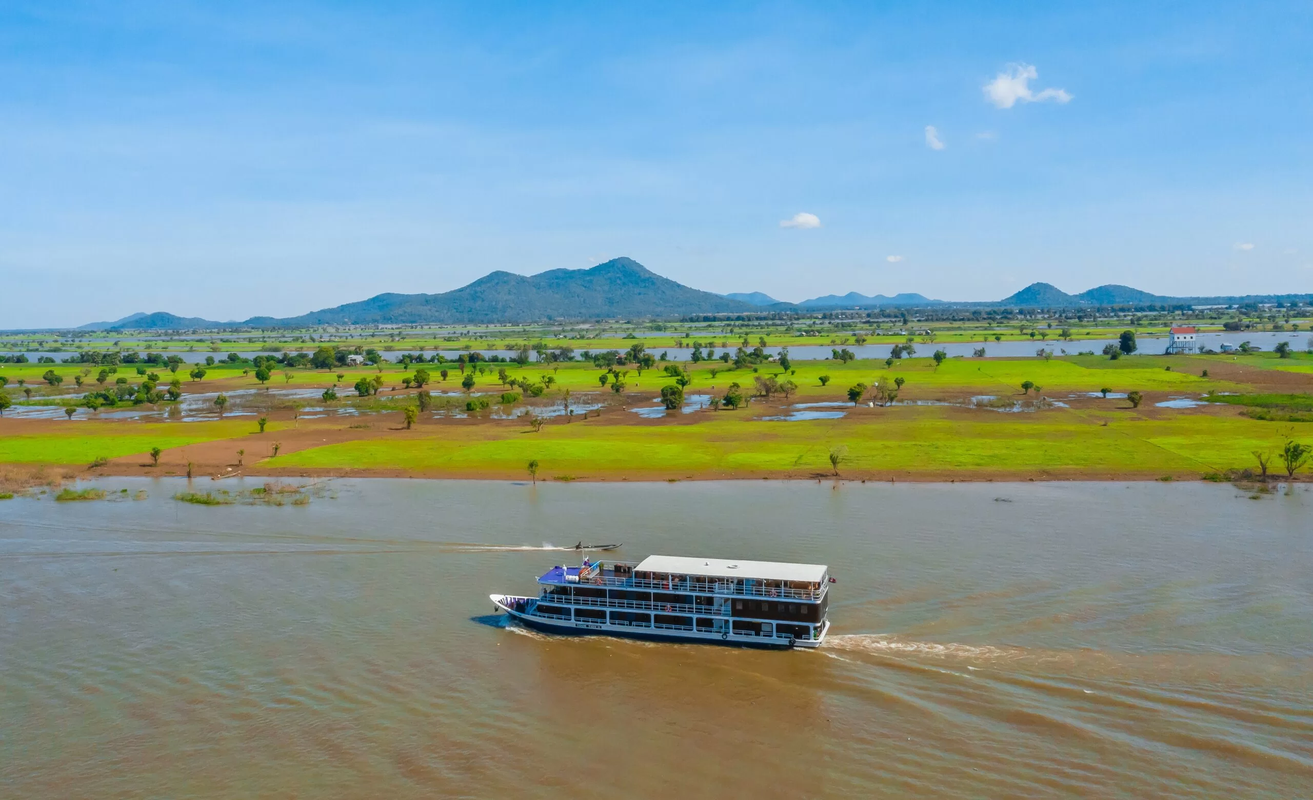 The Toum Tiou II, like its sister vessel, Toum Tiou I, differs from other Mekong river boats as it is able to offer a true cruising experience between Siem Reap and Saigon. Not only can passengers sail the entire way on the river, but they also sail in close proximity to the shoreline, allowing them unobstructed views of the wonderfully rustic existence of the local people. Other vessels are much larger and not designed for intimate navigation.